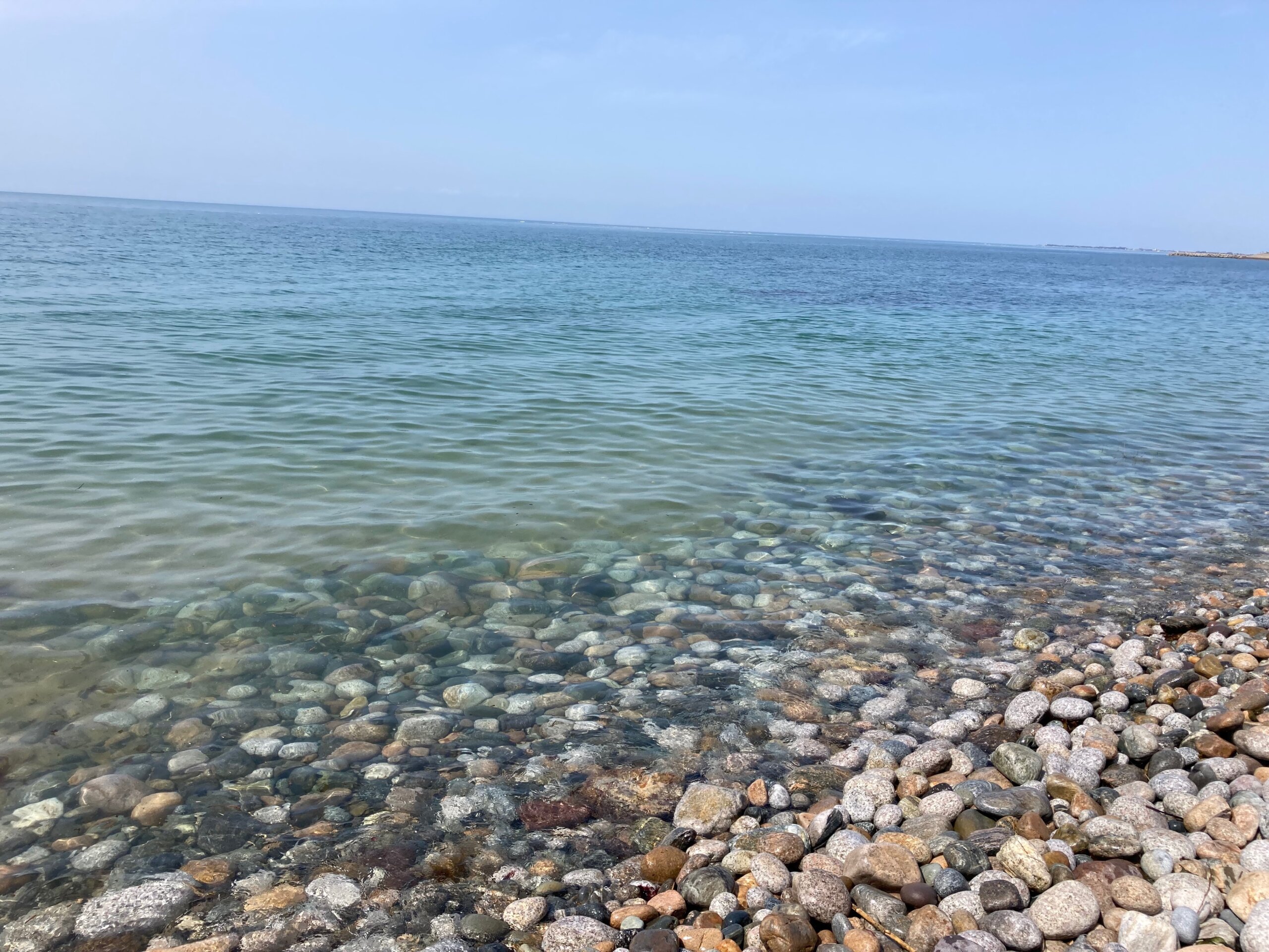 立山連峰を背に、春の海の波は穏やかで、暖かい日差しもあり過ごしやすかった