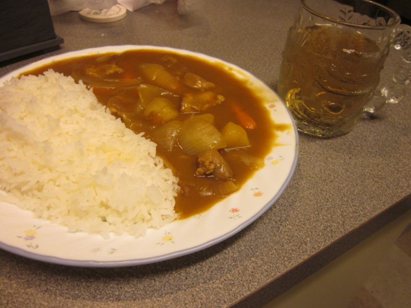 For lunch, I ate soba. After lunch, I went to Wal-Mart by bicycle on hot days. I bought rice and some ingredients to make the carry.