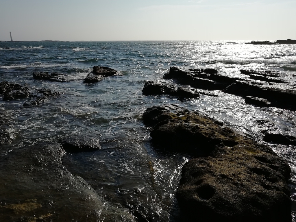 岩場を歩くと、小さなフナムシたちが闊歩している。