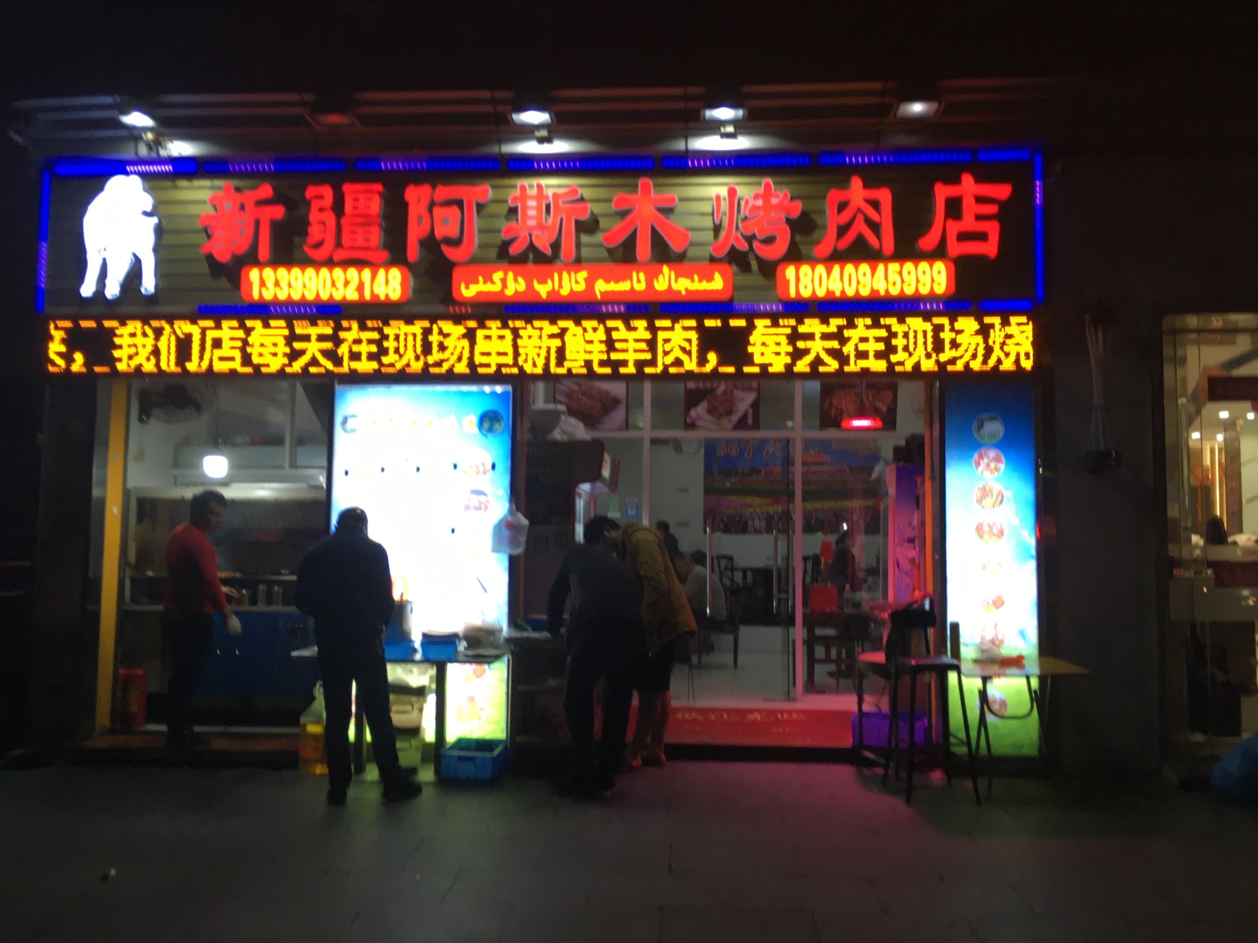 戻る途中、新疆料理屋で羊肉串を4つ購入。(20元)